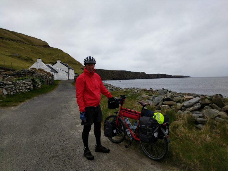 After 20 days of cycling mostly into a North Easterly wind, I reached the end of National Cycle Route 1 in Norwick, Unst, Shetland. Then guess what happened? The wind changed direction 😦