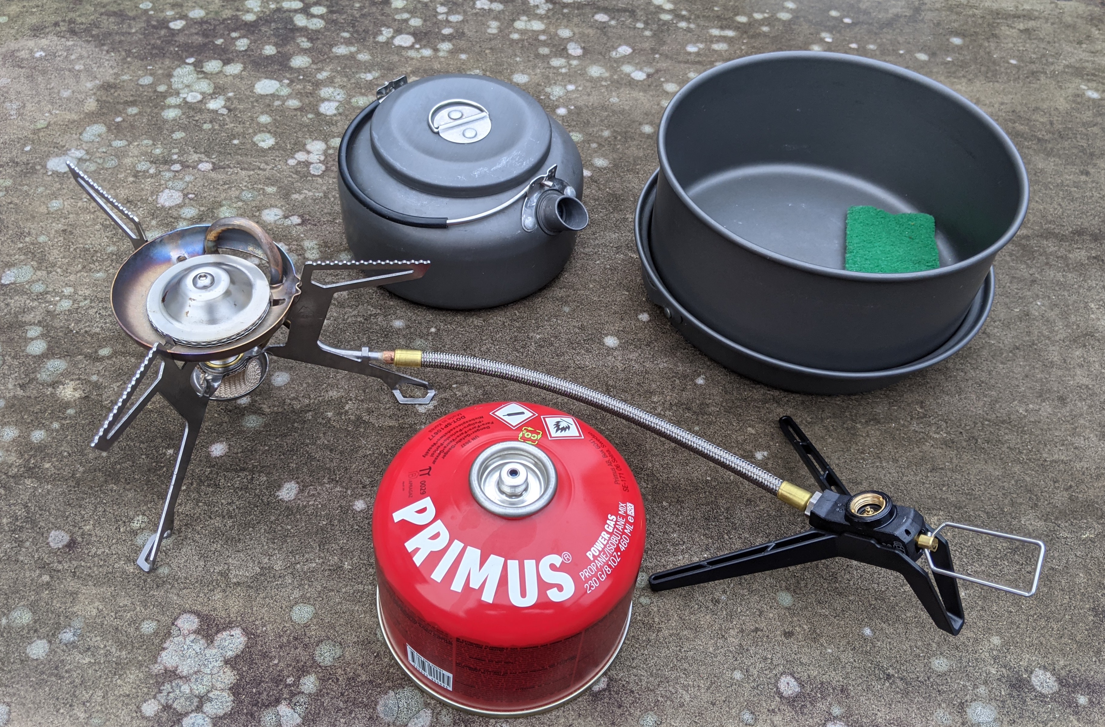 I decided during the lockdown, to review my cooking gear for cycling and walking trips. This activity involved a few hours in the loft, throwing my collection of stoves, pots, pans, mugs, fuel bottles and spoons into a cardboard box and laying them out on the living room floor, while my wife was out for the day. I counted seven stoves: a mixture of Trangia units; and old Whisperlight petrol stove; a Trail Designs Sidewinder Ti-Tri system and my current gas canister burners.