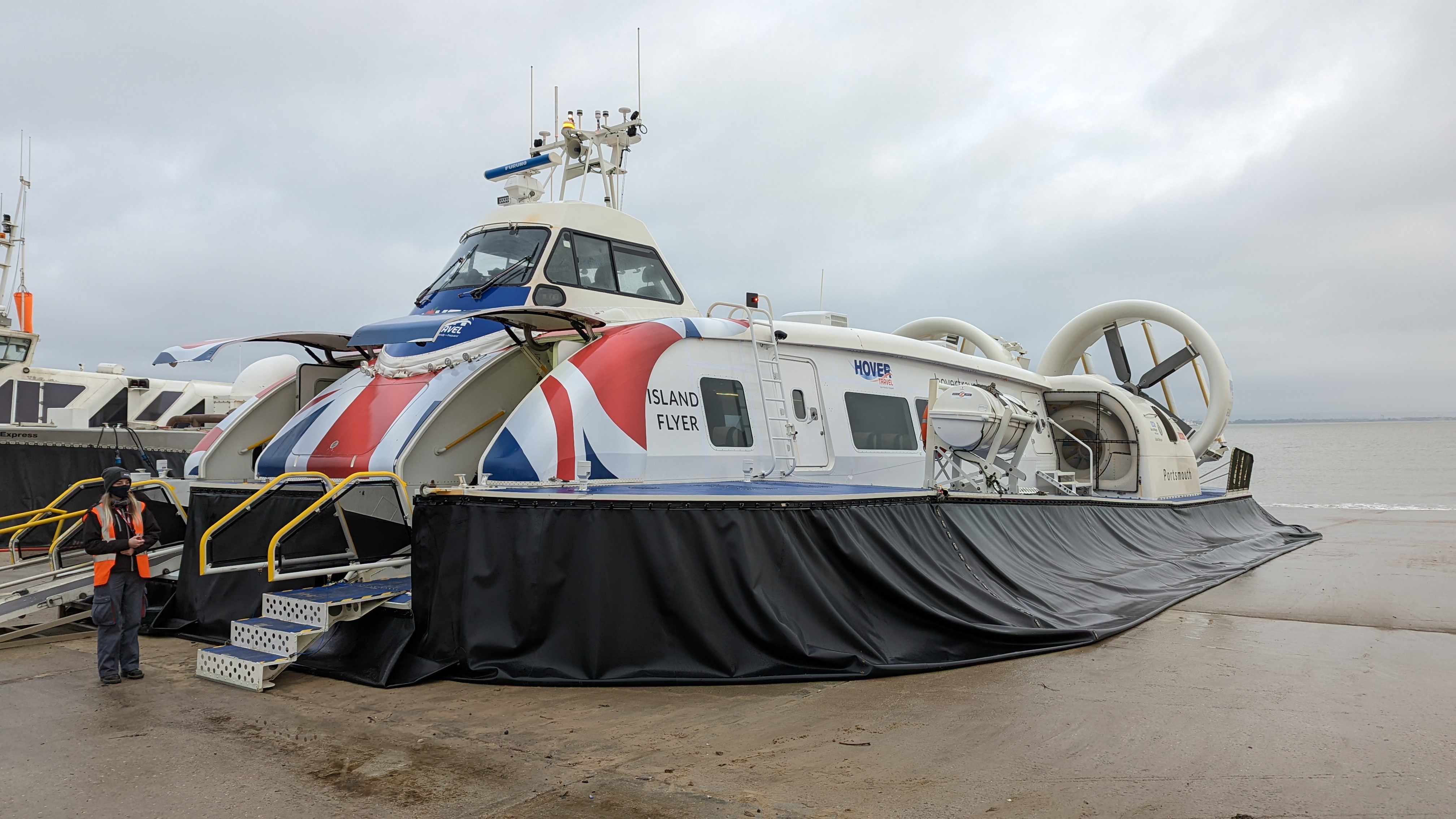 I skip Hayling Island, as the Hayling ferry is not running and a 6-mile cycle path there and back doesn’t appeal. It is another note in the book to return, to walk the Langstone Harbour circuit when the ECP has implemented a path. Farlington Marshes more than compensate, with rich winter fowl birdlife. I wish I had brought my binoculars. Much of the eastern section of Portsmouth has major coastal defence work in progress, but the Southsea promenade is busy on a sunny Sunday. I catch the hovercraft service to Ryde the next day, the last remaining year-round scheduled service in the world. The Griffon 12000TD hovercrafts are new (2016) and significantly quieter and very comfortable to what I remember.