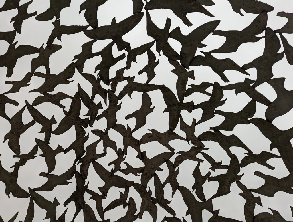 The beaches continue, with a low tide permitting extensive hard sand sections to Dunstanburgh Castle via Beadnell and Embleton Bay. I can progress to Alnmouth via Craster to wait for a bus into Alnwick and another good YHA hostel. Returning the next day, a sizeable man eats 3 bacon baps and 6 Greggs sausage rolls, washed down with 3 cans of high-energy drinks in the 10-minute bus journey – probably enough calories for a week of walking. He emits a loud burp as I disembark to walk around the estuary onto another extensive beach section, which I overshoot near Warkworth, another scenic castle built in the oxbow meander of the River Coquet. Beautiful sculptures mark the path into Amble for an excellent lunch with a mischievous gathering of starlings who have learned to appreciate the food huts near the port and will happily feed out of your hand. I relax into the afternoon walk to Newbiggin-on-Sea and a seaside hotel that looks drab outside but has a stunning sea view room to watch the sunrise. I listen to the quiz night downstairs and can only answer 3 of the 20 tunes correctly. The breakfast is epic and will serve as lunch too with a handmade sandwich wrapped in foil.