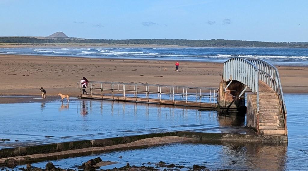 Dunbar marks a turning point to follow an inland path to North Berwick, which is not hard to miss, as North Berwick Law, another volcanic plug, like Bass Rock, dominates the landscape. I am now on the John Muir Way (JMW), which will take me to the West Coast if needed. The fields and estuaries are full of birds. I met a few walkers and often stopped to chat for quite some time in a few cases. Heading north from East Linton, I have a memorable encounter with a Pine Marten, bouncing up the path towards me. I freeze and let it explore further until it is within 5 metres, spots me, and dives into the bushes. I call it day in North Berwick and catch the local 124 bus service to Aberlady to the campsite, whose owner has a camping pod I can use for two days as I walk to Musselburgh.