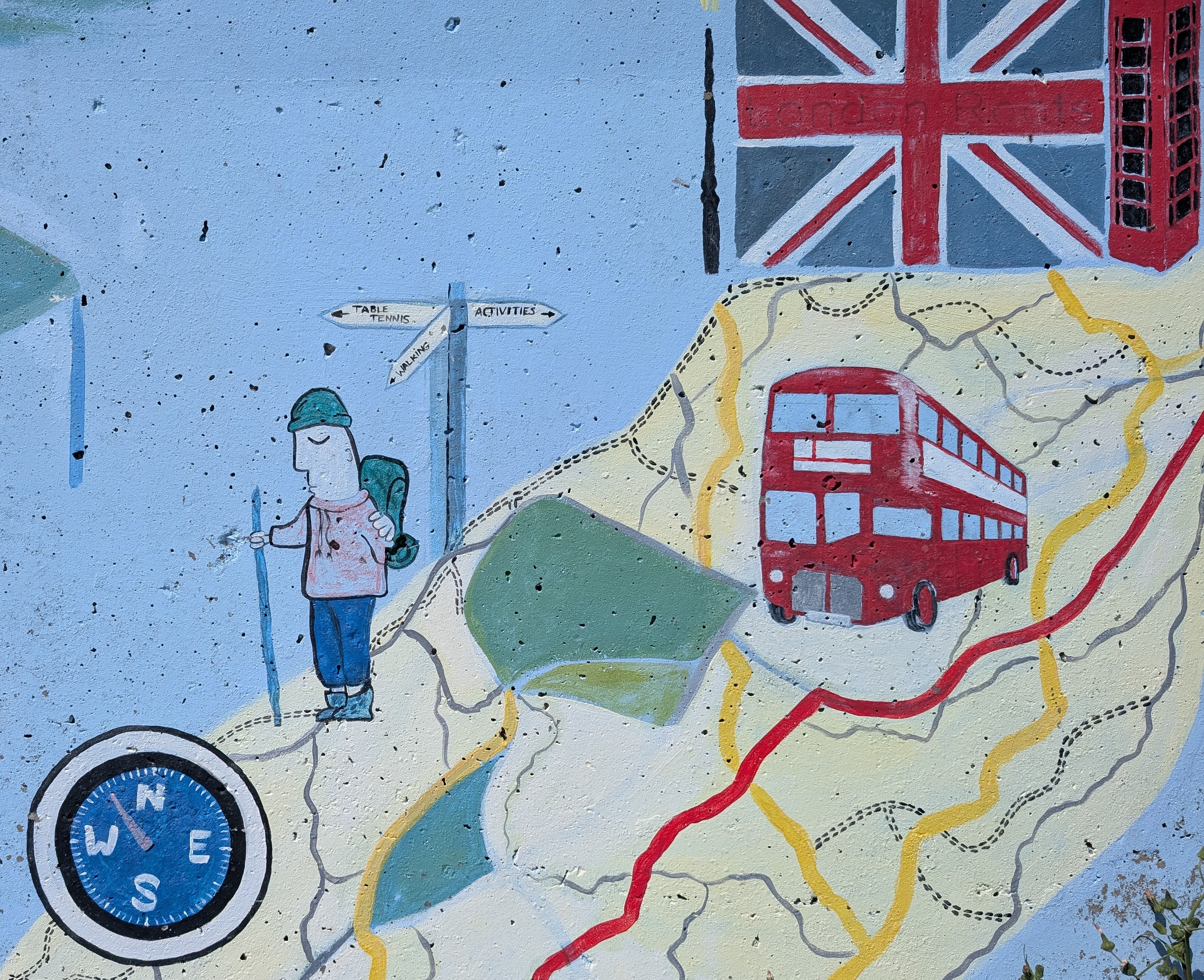 I walk clockwise, past the gas works, alongside the sea wall, to the natural landscape of the estuaries full of bird life. I pass by the Lobster Smack, which has the same vibe as the World’s End pub on the opposite shore. Cuckoos call and then can be seen, warblers of all persuasions chirped away in the rushes, and oystercatchers and dabbling ducks peck away in the mudflats. It is a quiet overgrown path, but an obvious route to the road bridge and the northern section of the island, passing the ominous flood defence gates on the way. At the eastern end, the marina contained the new and the old, a motley collection of rotting hulks and shiny new fibreglass vessels. The yacht club gave way to the sea wall, with a nice collection of murals depicting scenes relevant to the residents of Canvey – fishing, heritage and social life. It is a nice 22km, but I had energy left.