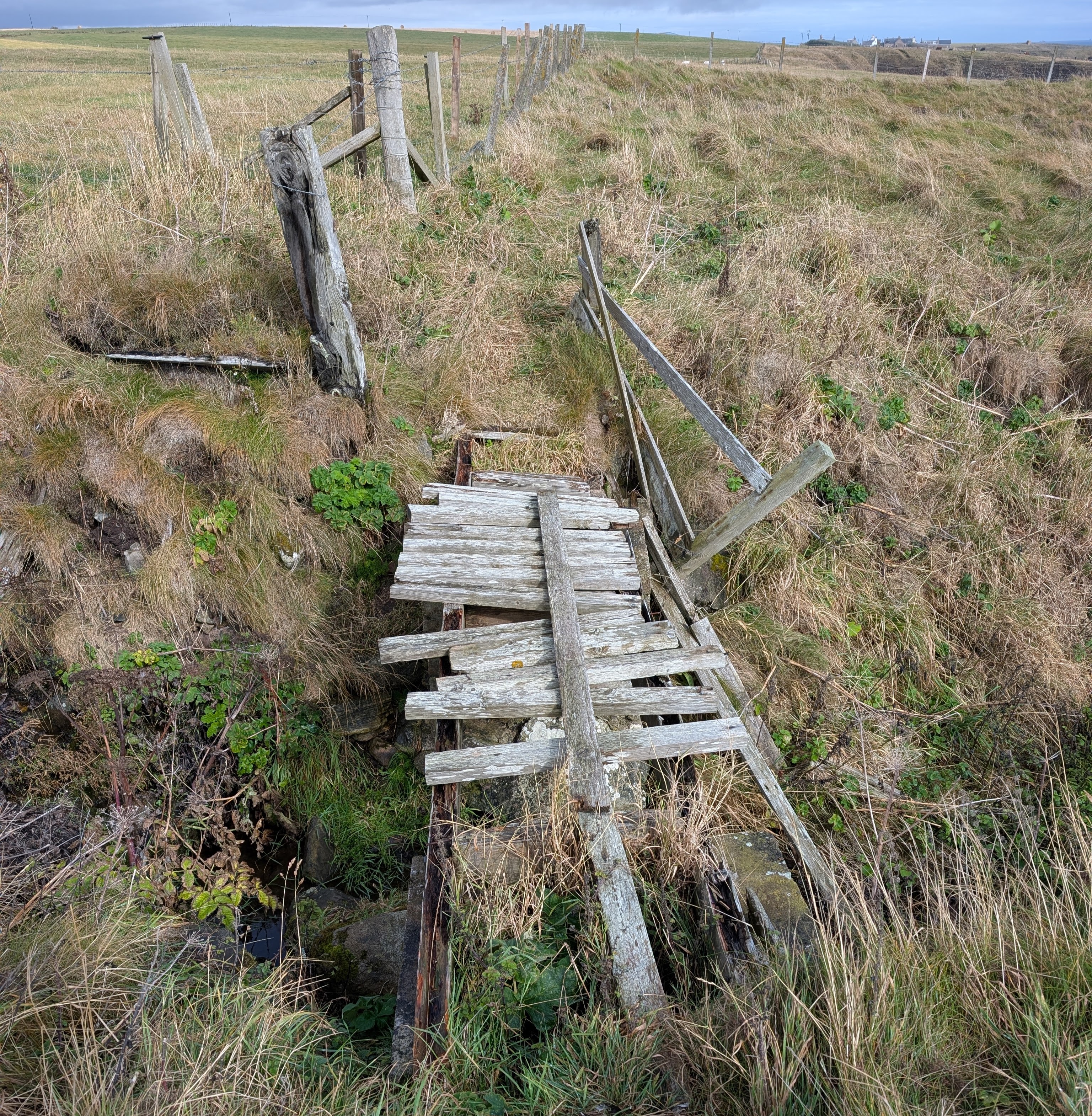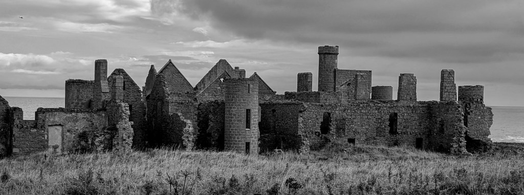 I explore Slains Castle before finding a path into and around a gorge to rejoin a path that keeps to the coastline, although the path becomes rough and bridges are definitiely sketchy. This leads past The Bullers of Buchan, impressive rock formations and arches, before weaving through old quarries and disused railines, before reaching Boddam, to walk under a power station and a promenade of sorts into Peterhead. The B&B is a delight, tartan carpets, porcelain scottie dogs and a decor from the 60s and 70s. I am made welcome, and given directions to a chippy, the first on this journey.