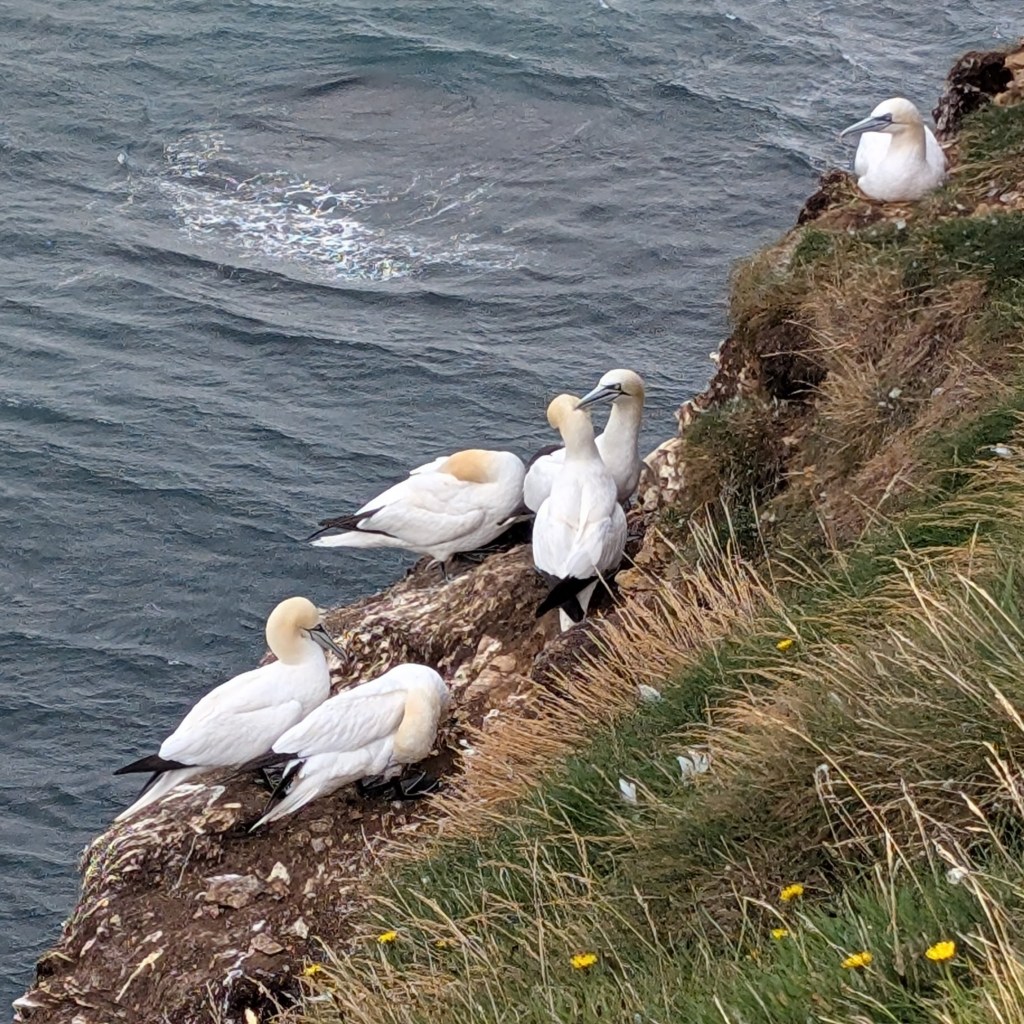 Now I head west and the terrain changes. I am expecting a lot of road walking to Cullen, but the initial paths are good to Roseharty and to Quarryhead, where I join minor roads to Clinterty and Pennan Farms, before descending to Pennan. This fishing village is recognisable as the film set for the wonderful Local Hero film from 1983. The postbox remains, and the character of the places is protected. It is a hard climb back to the road where I have no option but to slog it out until I can find a road to Troup Head, for I want to see the large gannet colony. It does not dissappoint, and the cliff views are tremendous. I find another path to Crovie Farm, and then descend again into Garedenstown to fill up with water and search for a wild camp.