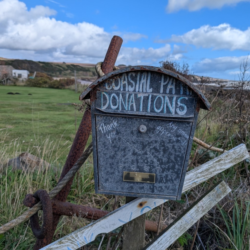 After a nice brunch and some time to see the local works of art that decorate much of Stonehaven, I walked to join the A92 dual carriageway to Muchalls, which once again, was reasonably safe walking, with a generous cut grass verge. After this there is a good path to Porthelen, and a train which takes me to an Aberdeen city base for a few days.