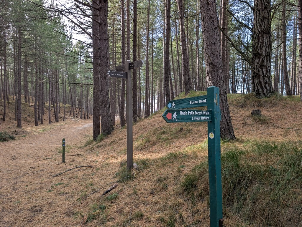 The scene doesn’t change for several miles, requiring a quick GPS to check to make sure I am on the right forest track. Eventually it follows the shoreline, but the path has fallen into the sea along several sections, not that this deters a number of mountain bikers. It is easy walking until the dunes of Findhorn, with indistinct paths into the village, a route I have to take as the spring high tide has covered an easier route, that I recall from earlier visits to this lovely seaside village, home to the Findhorn Foundation – an organisation that strives to uncover life’s true purpose in nature.