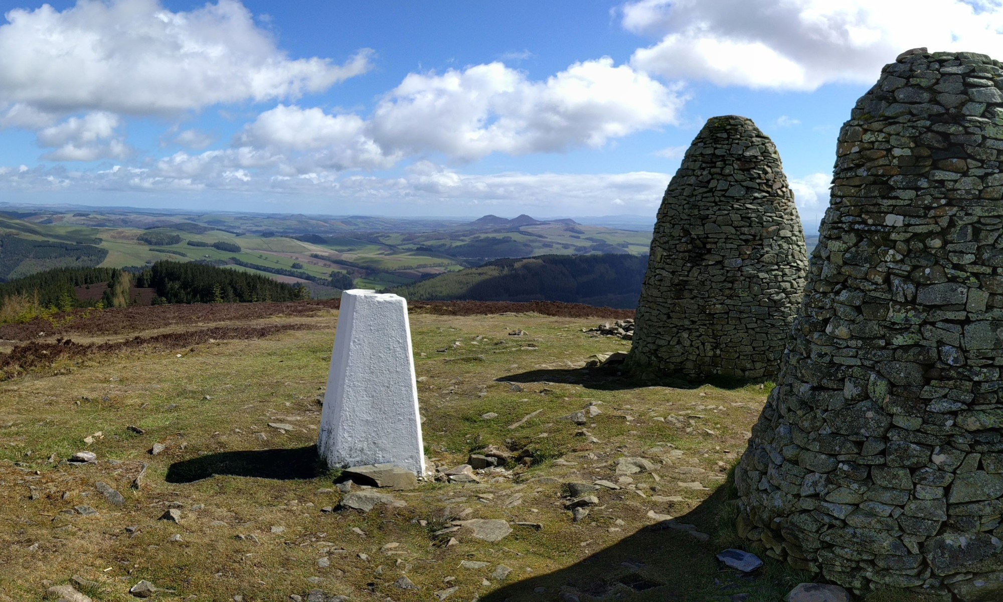 The next morning I realise the meal was rancid and I find myself in the middle of nowhere being violently ill. I have to make it to the next town at Lauder, where a bottle of Lucozade seems to bring me around and allow me to progress to Galashiels, having eaten nothing. 20 miles in such a state is a major achievement. That day was a worry had it been worse, but a lovely B&B and FSB (Full Scottish Breakfast) sorts me out quickly. I book accommodation ahead just in case and walk another 16 miles to Innerleithen. Galashiels has everything and so stock up on a good lunch. I ascend towards the Three Brethren, for superb views across the Lammermuir Hills and a cold windy walk eastwards. The visibility is fantastic and I am sure I can see 50-100 miles in all directions from Brown Knowe a few miles on. I meet another Dutch couple, the third since the start and ask then why the Scottish Borders and they answer “because Holland is flat!”. Duh.